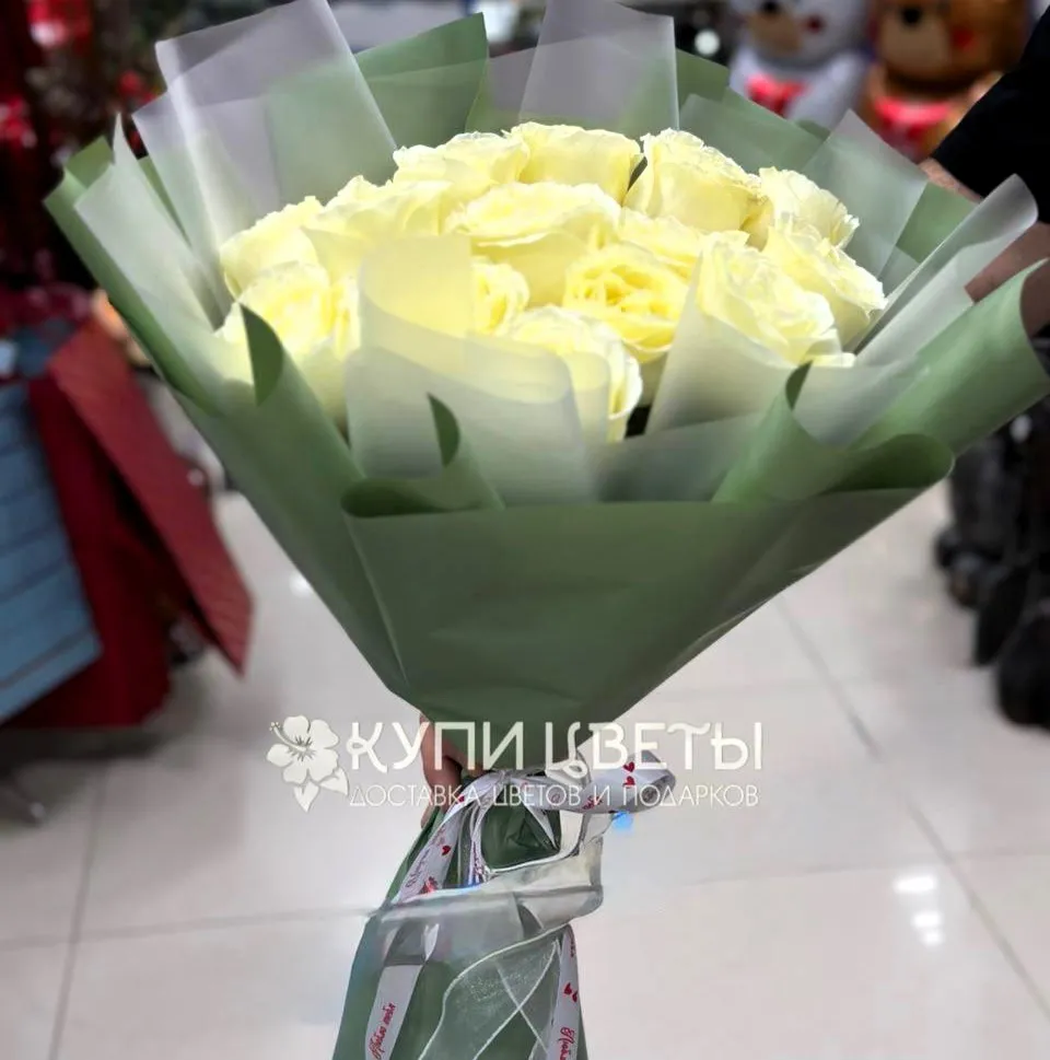 Букет из 15 белых роз — это воплощение элегантности и романтики. Каждая роза, словно облако нежности, дарит ощущение тепла и гармонии.