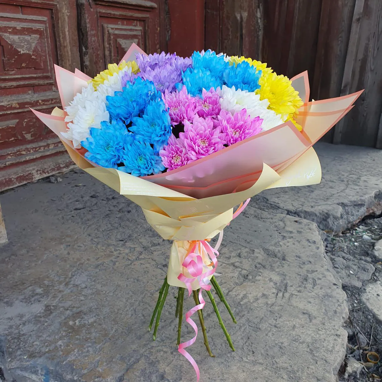 Букет из кустовых хризантем Разноцветный подарок