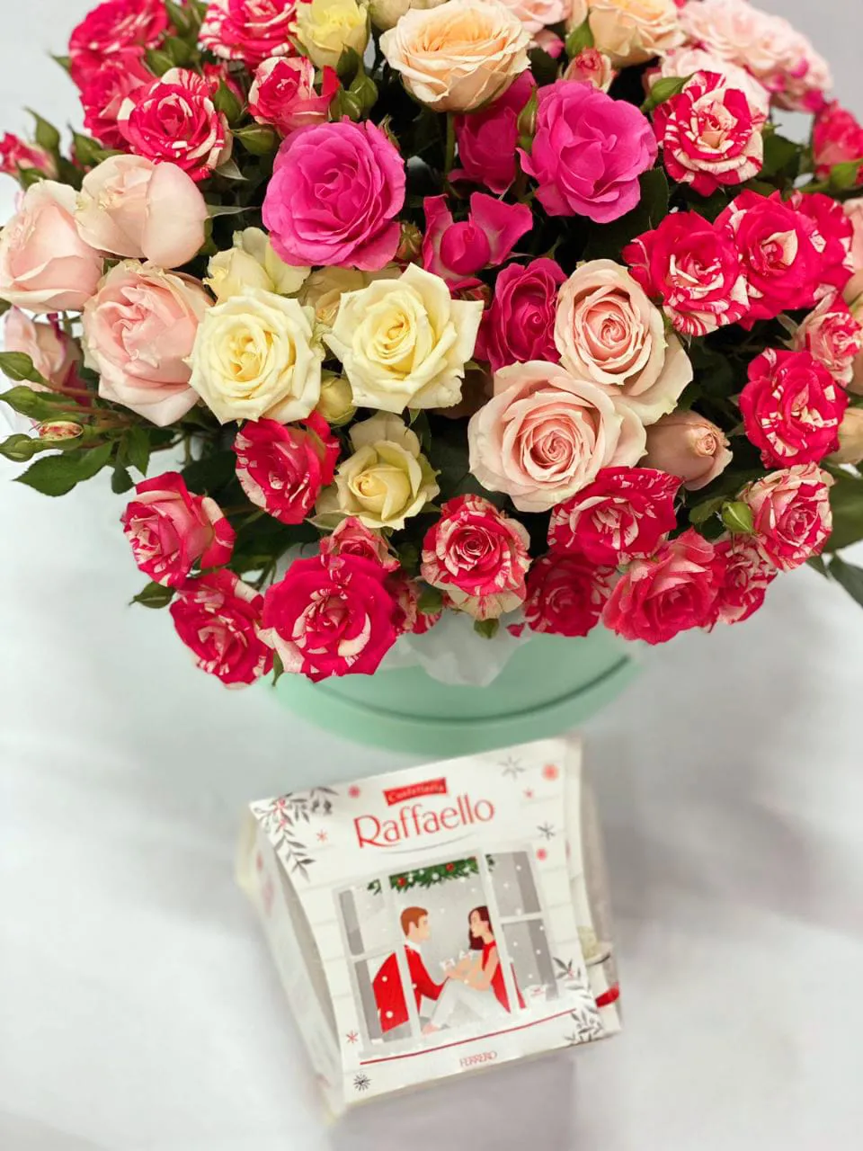 • Премиум - 25 кустовых роз, коробка, оазис